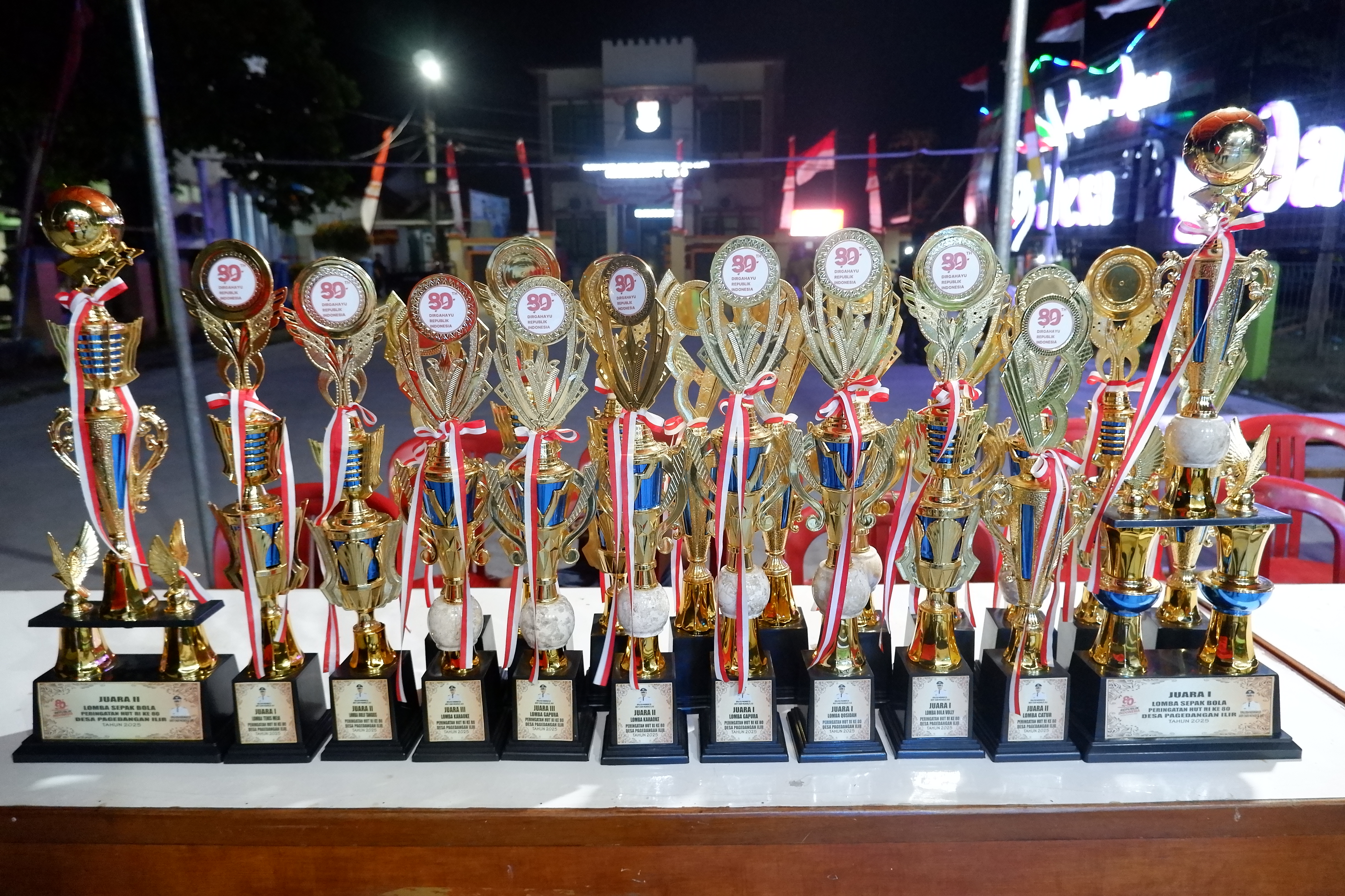 Pemenang lomba menerima piala dan piagam penghargaan yang diserahkan oleh Pemerintah Desa Pagedangan Ilir bersama panitia PHBN, untuk pemenang lomba terhitung merata membuktikan bahwa antusias warga sangat tinggi mengikuti lomba memeriahkan HUT RI ke 80 di Desa Pagedangan Ilir.